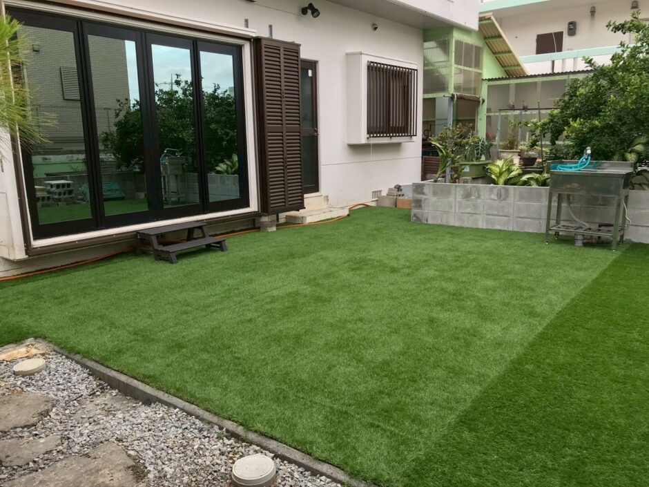 こちらの人工芝は2020年に施工して今まで剥がれるトラブルは一切ありません。同敷地内の土の上に2018年に施工した場所もトラブルはまだ出ていません。